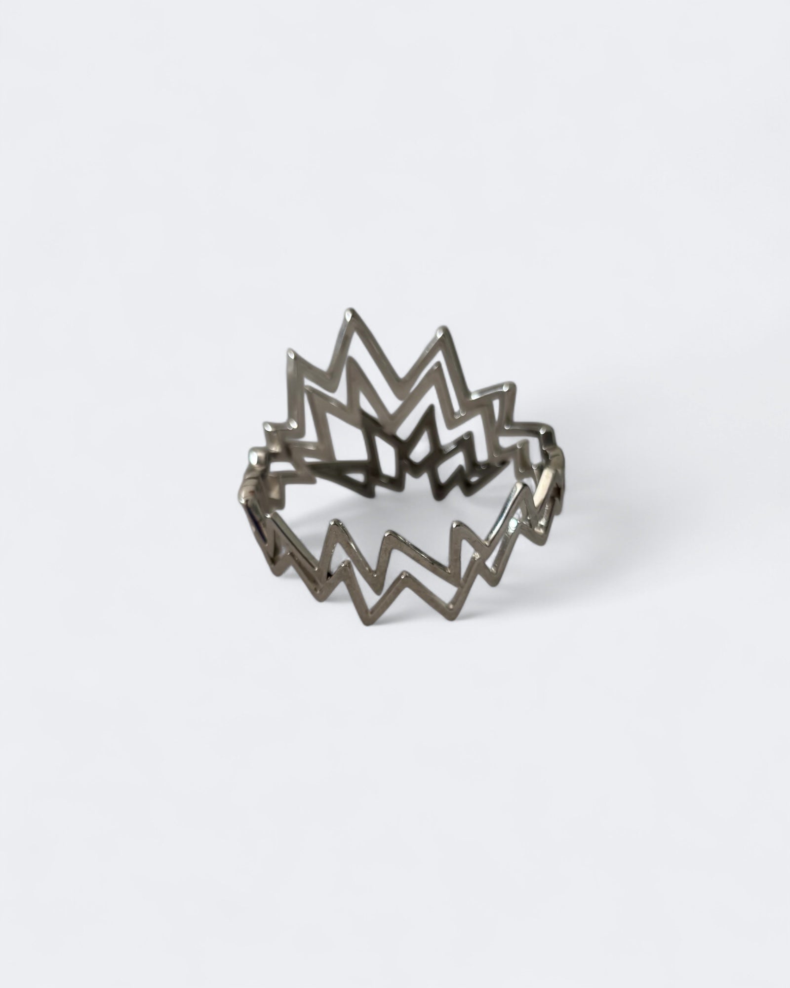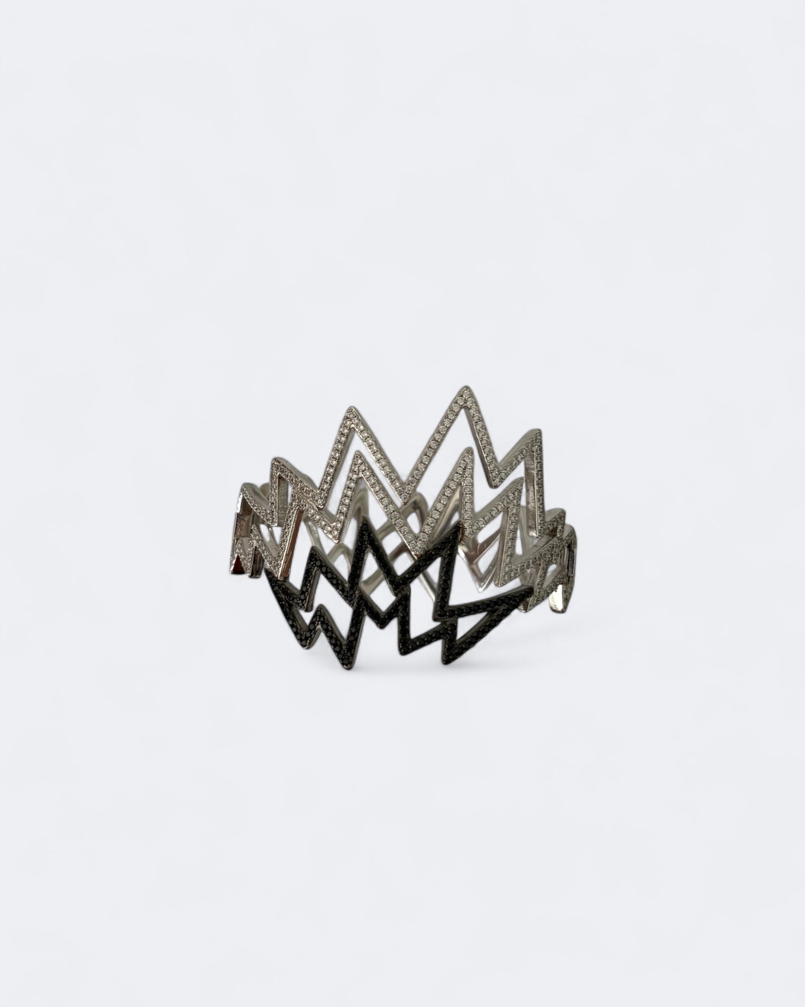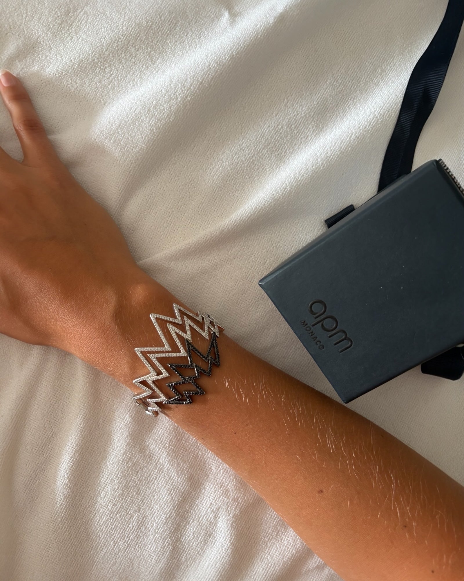 Bracelet manchette APM Monaco en argent 925 blanc et spinelles noires en excellent état avec le pochon et la boîte.